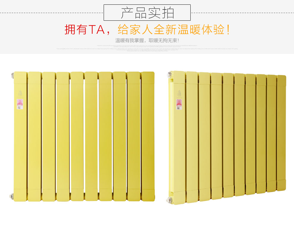 2、散熱性好:鋁的散熱性非常好,銅鋁復(fù)合暖氣片外層以鋁包裹,散熱性非常好。