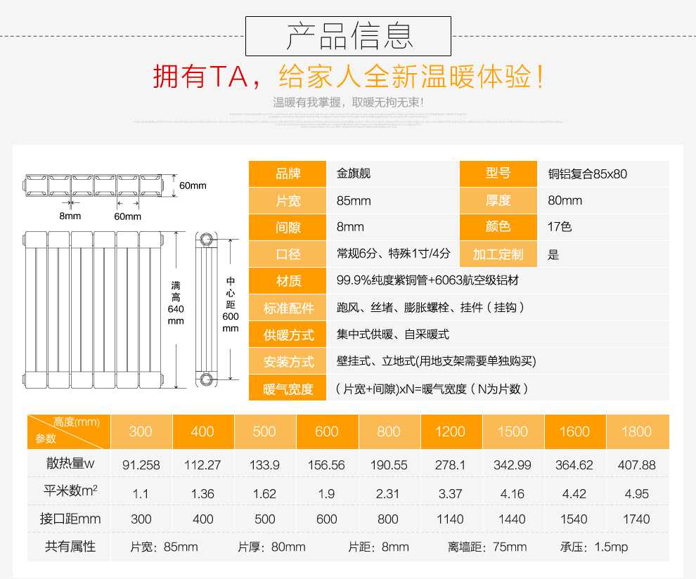 金旗艦銅鋁復(fù)合暖氣片質(zhì)保,產(chǎn)品只換不修。