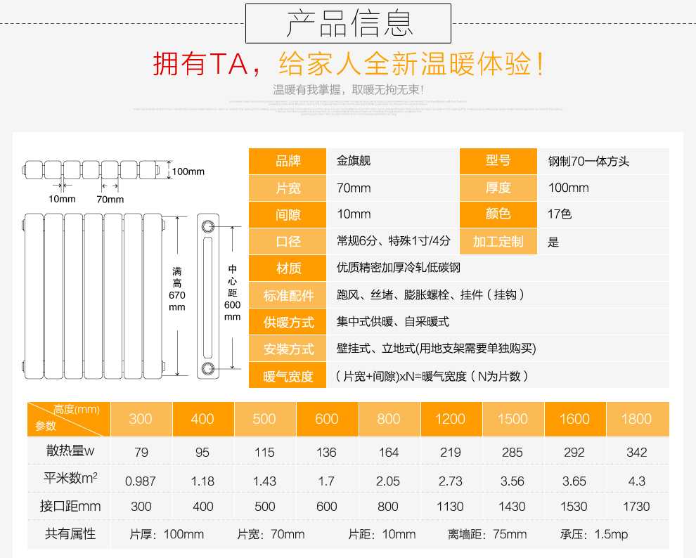 金旗艦鋼制暖氣片質(zhì)保,產(chǎn)品只換不修。